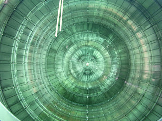 まだ実験装置が稼働していないので中をのぞくことができます。ライトに照らされて、意外なことにとっても綺麗でした。